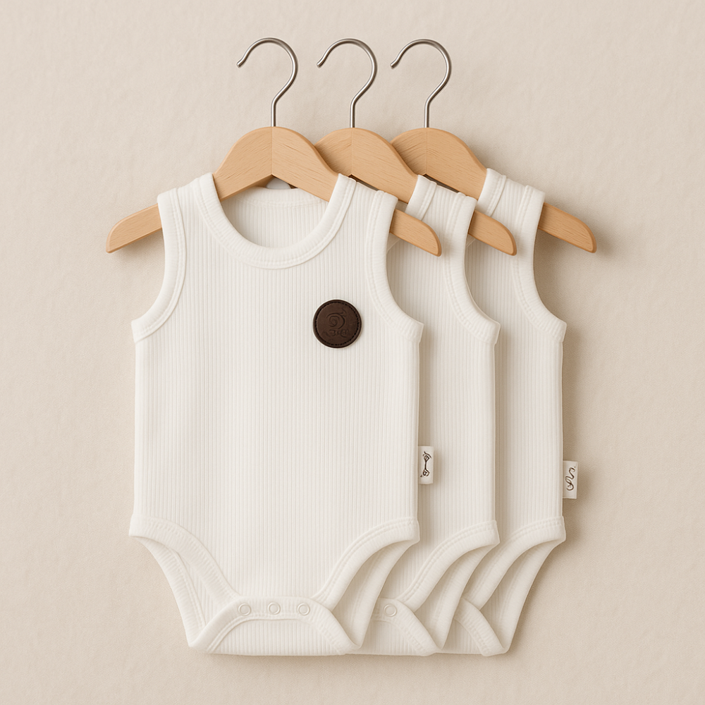 طقم أساسي يناسب الاستخدام اليومي أسفل الملابس أو بمفرده في الأجواء الدافئة. قطن ريب مضلع ناعم يسمح بالتهوية، مع كبّاسات سفلية لتبديل سريع وسهل.