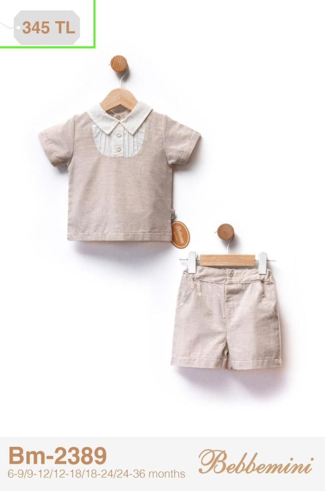 - تصميم كلاسيكي مريح (Casual Chic)، يتميز بياقة القميص البيضاء المطرزة التي تضفي لمسة أناقة على الطقم العملي، مع شورت بقصة مريحة تسمح بحرية الحركة واللعب.