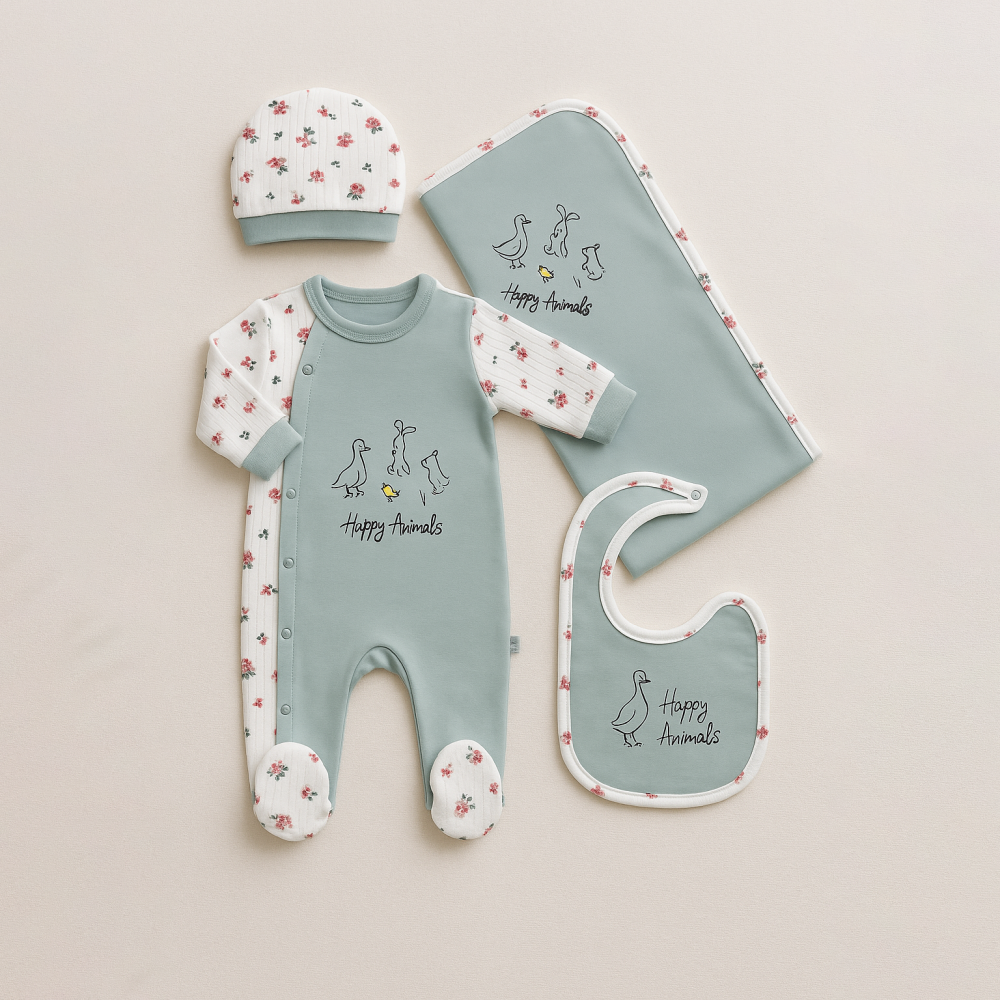 طقم 4 قطع قطن ناعم – هابي أنيمالز