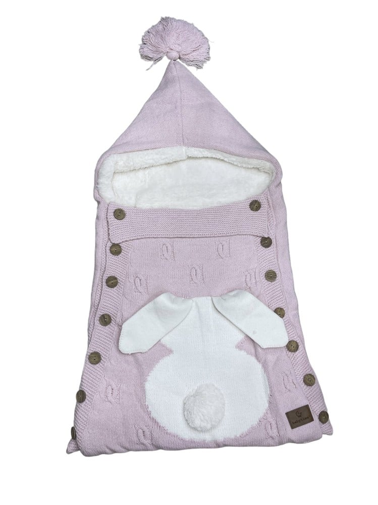 - تصميم ساحر على شكل ظرف يفتح ويغلق بأزرار خشبية أنيقة على الجانبين لسهولة وضع الطفل وإخراجه. مزين برسمة أرنب لطيف مع ذيل بوم بوم بارز، وقبعة رأس مزودة بكرة بوم بوم كبيرة لمظهر لا يقاوم.