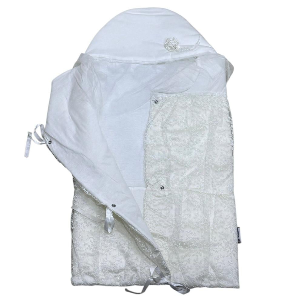 مدس استقبال عملي يسهّل لفّ الرضيع بأمان وراحة، مزوّد بقبعة لطيفة وزينة وردة رقيقة، مع ثلاث ربطات ساتان للإغلاق المحكم. مناسب للاستقبال والتصوير والنوم القصير داخل المنزل أو عند الخروج.