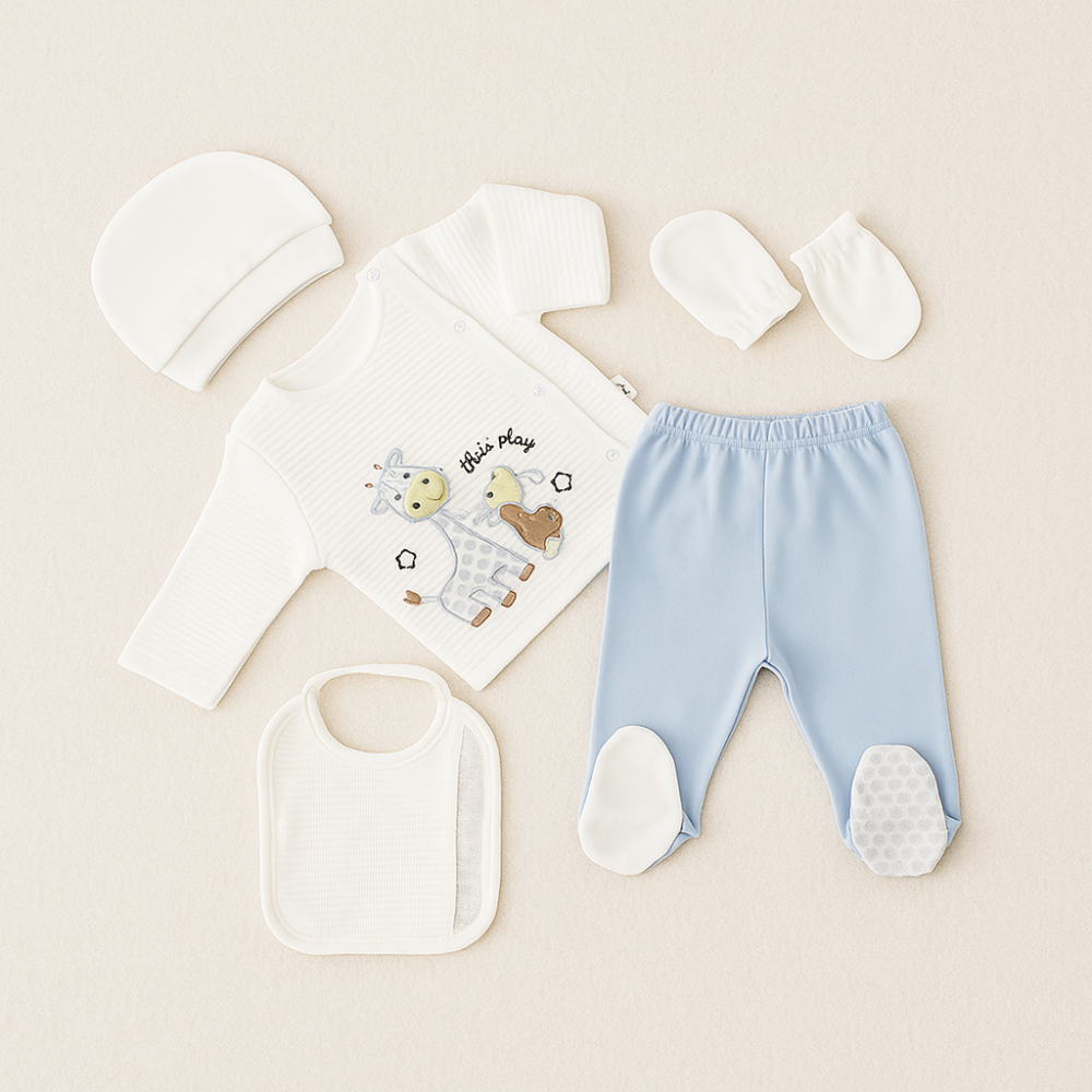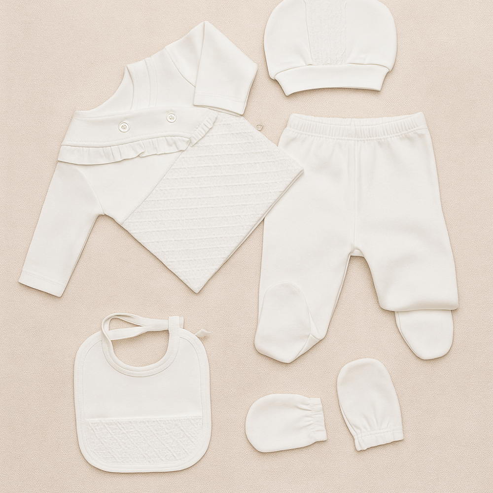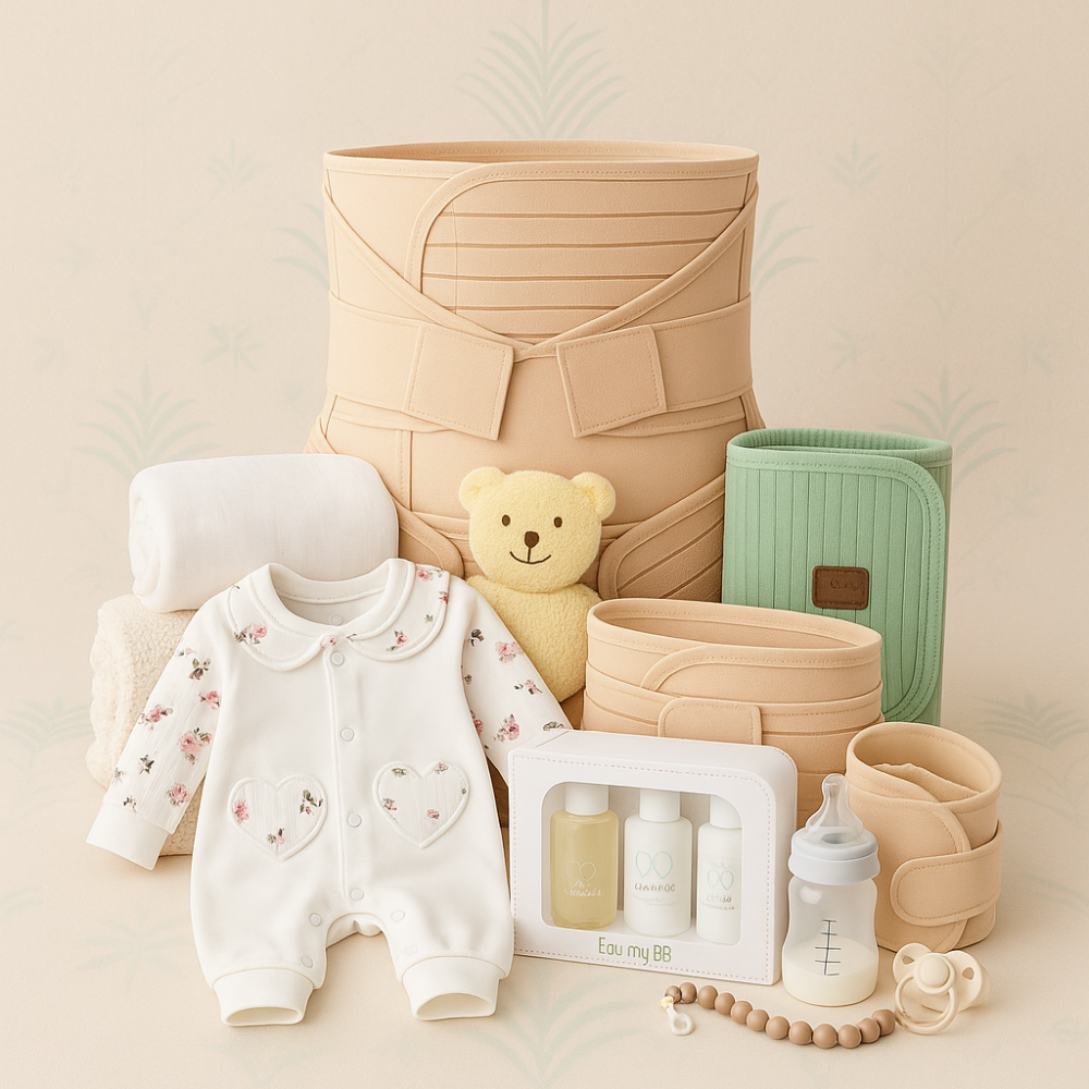 • أفرهول عملي بأزرار كبس لتبديل سريع، مهادات خفيفة للاحتضان، ومشد ثلاثي داعم للأم بعد الولادة.