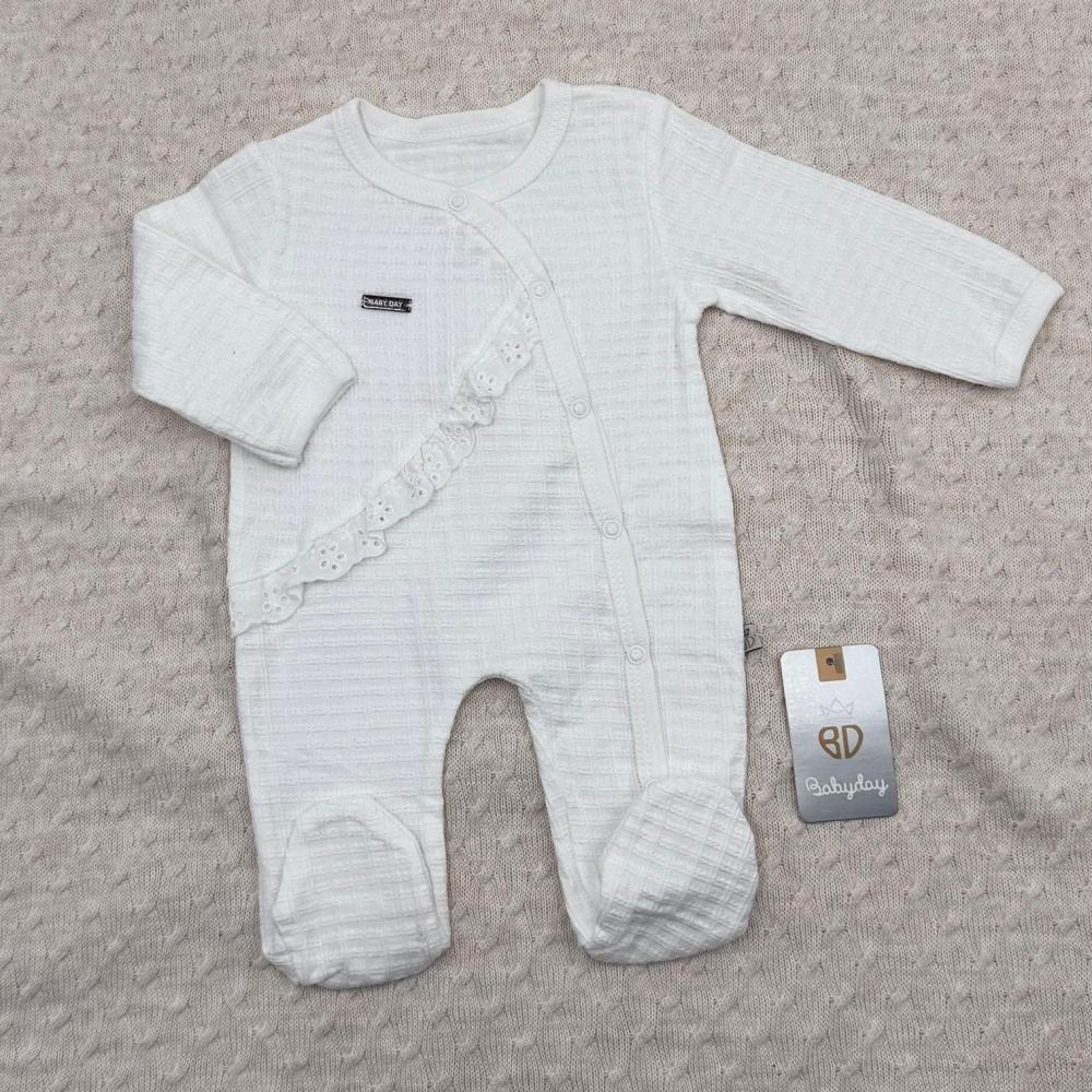 - مصنوع من أجود أنواع القطن المضلّع (Ribbed Cotton)، الذي يوفر مرونة وراحة فائقة، مع ملمس ناعم جداً على بشرة المولودة الحساسة.