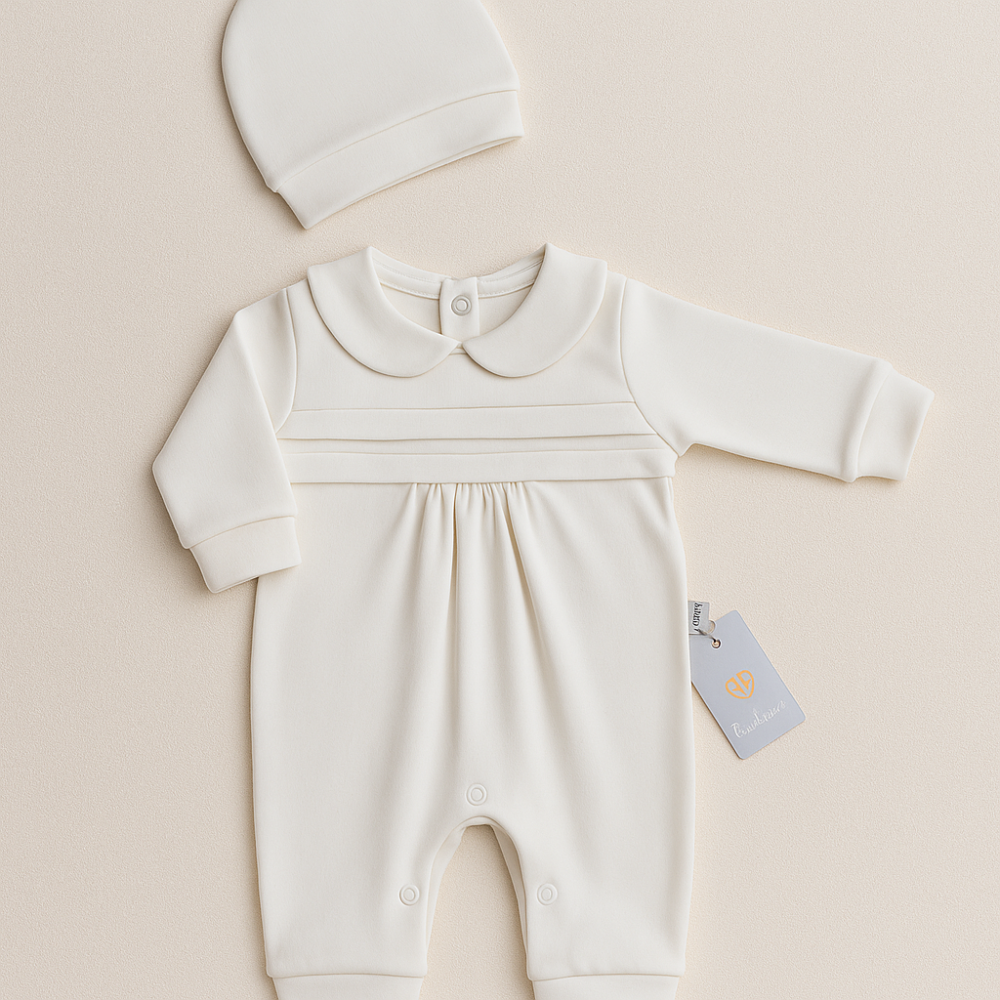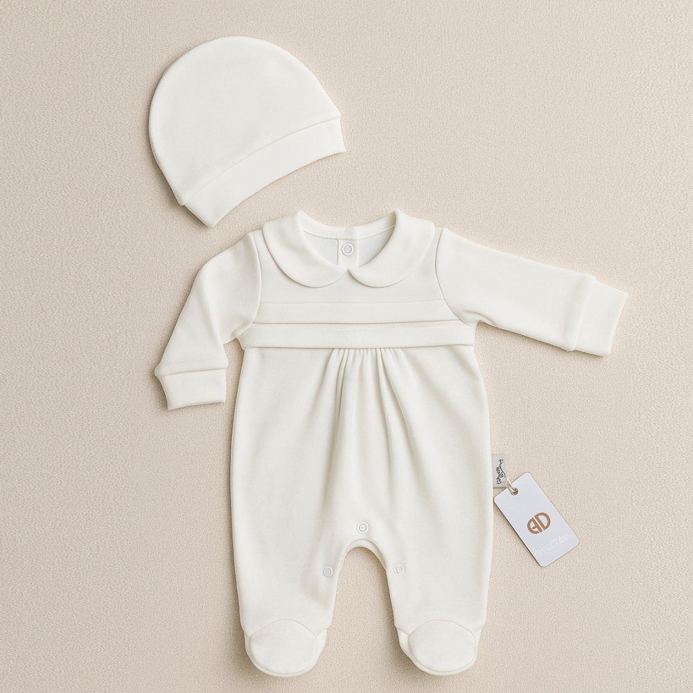 • أفرول مواليد بأقدام مغلقة وياقة كلاسيكية.